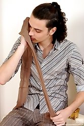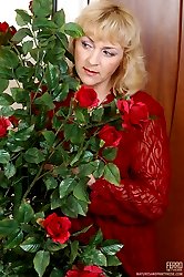 Busty mature housewife in soft tights making cock rock-hard for her pussy